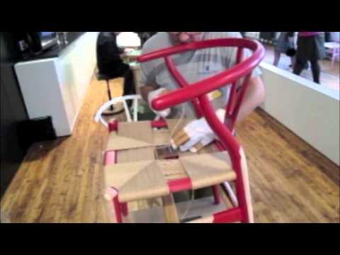 Wishbone Chair, 1949. The Wishbone chair was the first collaboration between Wegner and maker Carl Hansen, who has produced it since 1950. In 1944 Wegner began a series of chairs inspired by a portrait of Danish merchants sitting in traditional Ming chairs. The Wishbone chair is the last and most distinct of the series. The inspiration is clearly visible, but the chair is an original form. The back legs are steam-bent into a curve that tapers to join a circular steam-bent back rail. The joinery was difficult but resulted in a strong, lightweight chair.